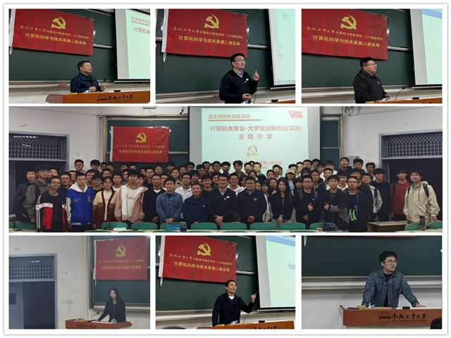 随后,计算机科学与技术系副主任、物联网工程专业建设负责人卫星老师、支部宣传委员曹力老师、组织委员乔焰老师、班主任刘彬彬老师和凤维杰老师,分别结合自身作为指导教师带队参加高水平学科竞赛和开展学术研究工作的经历,以典型参赛案例、比赛现场点滴以及具体研究方向为对象,向参加活动的同学们分享了带队参加“互联网+”大学生创新创业大赛、ICPC国际大学生程序设计竞赛、全国大学生系统能力大赛以及研究方向选择、文献查阅、方法创新等方面的宝贵经验,并鼓励大家积极投身创新创业实践。