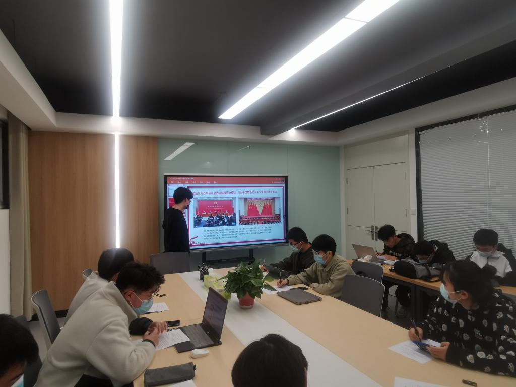 本次主题学习研讨活动紧密围绕学习党的十九届六中全会精神,采取分组个人分享、互动交流、集中总结的方式进行。研讨中,学员们集体学习了《中共中央关于党的百年奋斗重大成就和历史经验的决议》,通过分享中国共产党团结带领中国人民百年来为实现中华民族伟大复兴进行的奋斗、牺牲和创造,全方位的展示了中国共产党为中国人民谋幸福,为中华民族谋复兴的初心使命。有的同学通过对伟大建党精神的分享,号召广大青年要抓住学习的大好时机,学好专业知识,投身社会实践,在实学实干中让青春绽放光彩。有的同学结合脱贫攻坚精神和伟大抗疫精神,向同学们发出做好模范带头作用,勇于担当,积极主动,为疫情防控发出青年党员的声音,做出青年党员的贡献。有的同学结合个人科研和竞赛经历,分享了我国科技飞速发展的伟大成就,立志为解决“卡脖子”难题拿出青年方案,贡献青年智慧。
