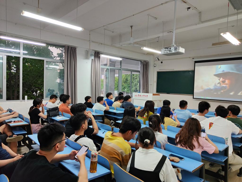 观影结束后,同学们进行了分享讨论。王涛同学感触很深,他说道,祖国现在的和平来之不易,是无数革命先烈用生命换来的;作为新时代的青年党员,要珍惜当下,刻苦钻研科学文化知识,用扎实的学识和过硬的本领为建设社会主义现代化强国做出青年人自己的贡献。