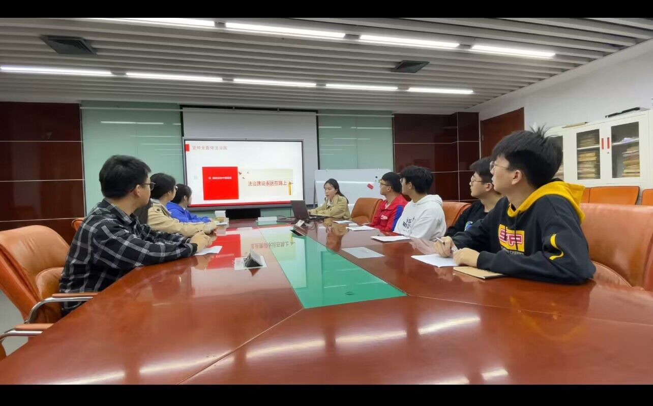 会上,党支部书记朱佳佳回顾了中国法治体系建设的历史发展阶段,中国共产党从革命根据地开始,从无到有进行了法治建设的探索,到新中国成立后,初步建立起人民民主专政的法律制度,党的十五大首次提出依法治国的基本方略,中国正式走上了依法治国的道路,十八届四中全会后,中国进入了社会主义法治建设的新阶段。朱佳佳表示,中国特色社会主义法治体系建设是中国特色社会主义建设的重要组成部分,依法治国是国家治理的一场深刻革命,每一位党员都应该牢记“法治建设永远在路上”,信仰法治,尊崇法治,自觉遵法学法,守法用法,将法治精神贯穿于行,铭刻于心,实践于行。随后,各位党员同志就中国的法治建设同生活中的法治案例发表了自己的感想,大家一致认为随着中国特色社会主义法治体系建设的不断深入,治理国家更加依照体现人民意志和社会发展规律的法律,法治建设取得了重大的进步。