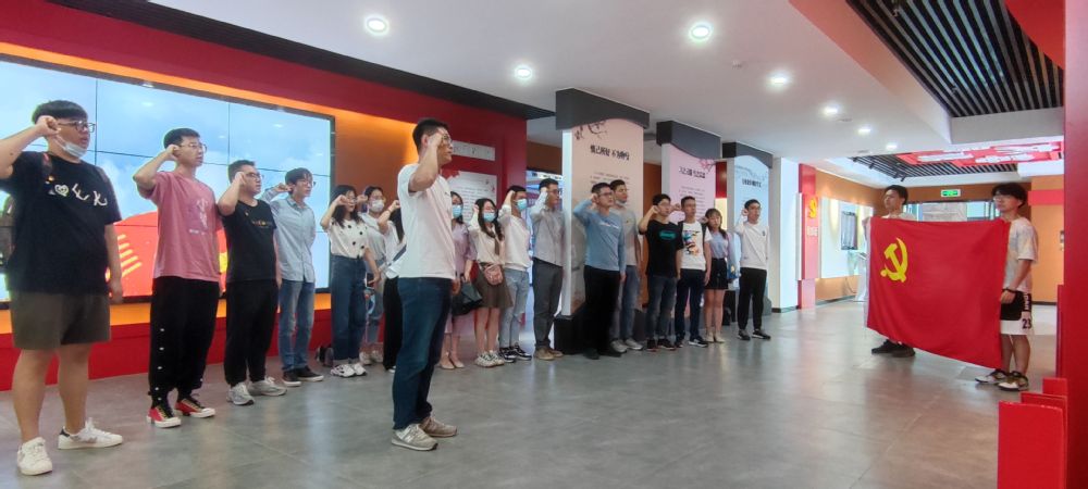 参观最后,刘世国带领本科生第二党支部党员、预备党员班学员面向鲜红党旗重温了入党誓词。
