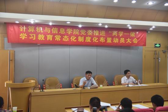6月7日下午,我院在校学术会议中心小报告厅召开推进“两学一做”学习教育常态化制度化布置动员大会,部署我院推进“两学一做”学习教育常态化制度化工作,全院教工党员和研究生、本科生党支部书记参加了会议。会上,院党委书记祖权作“两学一做”学习教育常态化制度化动员报告,院党委副书记何庆领主持会议。