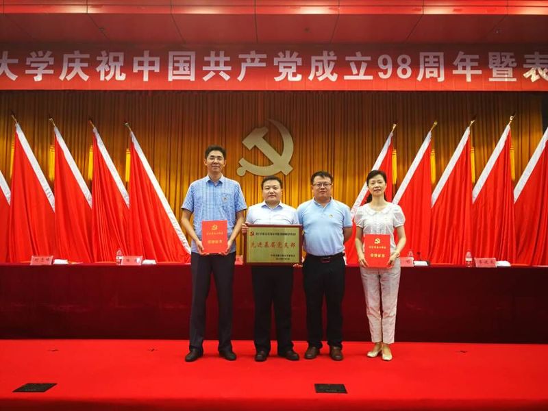 7月1日下午,学校庆祝中国共产党成立98周年暨表彰大会在东风报告厅隆重召开,大会在全体与会人员的雄壮国歌声中开始。全体校领导,学校党群部门负责同志,各二级党组织书记、副书记,基层党支部书记和党员代表,2019年新发展的党员代表,学校评选表彰的先进基层党组织负责人、优秀党务工作者和优秀共产党员参加会议。