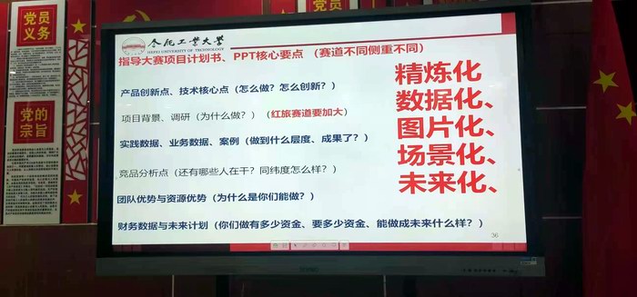 杨兴明老师为新能源学校和机电科技学校的一线教师做了一场“互联网+大学生创新创业大赛的备赛经验分享”的讲座,从大赛历史、备赛要点、金奖案例等多个方面进行了介绍,同时解读了今年的互联网+大赛的通知;随后,杨老师与两所学校的教师们就“项目培育”等方面进行了深入探讨。