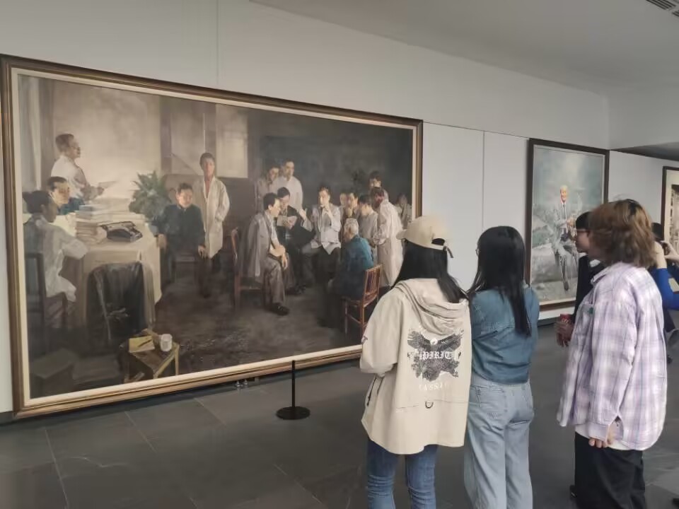 同学们主要参观了安徽省重大历史题材美术展、新徽派版画经典作品展和“徐悲鸿经典作品展”。从近代到现代百余年的时间,在安徽这片土地上发生过许多震撼人心的重大历史事件,涌现出许多引领潮流的历史人物,对中国革命、建设和改革产生了深远影响。展览用国画、油画、版画、雕塑等艺术形式诉说着这段波澜壮阔的历史,向观众描绘出一幅幅壮美画卷,让同学们体会到艺术家呼应民族精神、呼应时代进程的精妙构思和家国情怀。同学们跟随讲解人员的步伐,仔细学习和探讨每件作品背后蕴含的历史故事,接受心灵的洗礼。