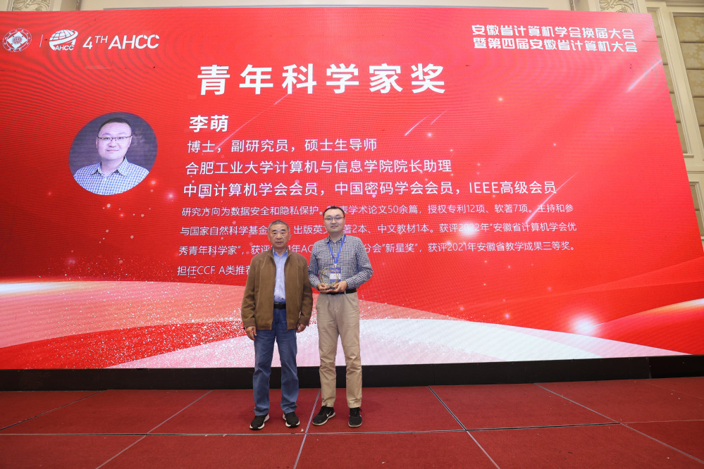 近期,2022年度安徽省计算机学会奖励名单发布,我院副研究员李萌获评优秀青年科学家奖,硕士生陈毅飞获评优秀硕士学位论文(指导教师:郑淑丽、李萌),硕士生樊高金获评优秀硕士学位论文(指导教师:杨静),硕士生杨雅静获评优秀硕士学位论文(指导教师:俞奎)。