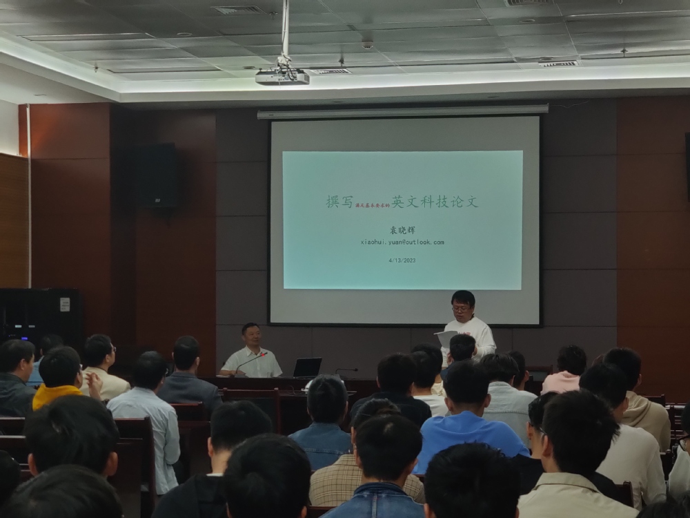 报告会上,袁晓辉教授首先以“写论文是为了啥”入题,介绍了完成科技论文的基本过程及撰写学术论文的重要性。然后袁教授结合多年从事科学研究、指导学生以及担任国际期刊编委等经验,围绕科技论文的一般结构进行展开,具体讲述了如何写作论文引言部分,如何阐述方法,如何进行实验结果呈现和分析,如何撰写摘要和结论等。最后,袁教授以审稿人的视角审视文章,分享了论文撰写时需要注意的要点。