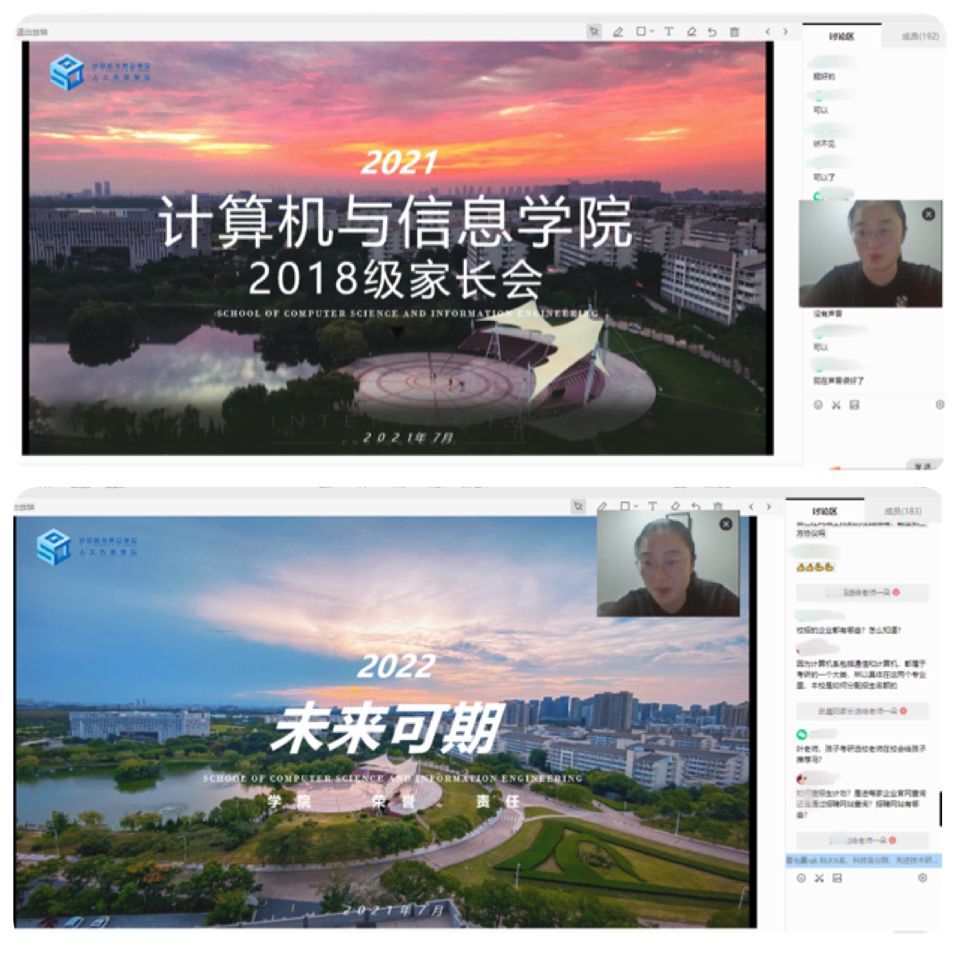 叶璟老师通过目前学生职业发展关注的几个问题引入,促发家长思考。随后,从职业规划的方向,给出了时间节点和重点注意事项。建议家长在孩子职业规划选择中,了解孩子的实际情况,做好支持工作。通过历年毕业生去向的情况,分析了当前本科生的就业和考研环境,向家长们介绍了了基层就业、应征入伍等其他就业方式,建议家长要尊重孩子的自我意识。在已经知晓职业选择的方向后,与家长探讨“如何选择”的问题。建议家长深入了解孩子的选择原因,科学地分析和引导。讲解过程中将生涯规划与生活实际问题充分的融合,建议家长珍视孩子的努力,做好孩子的坚强后盾。最后,叶老师与家长线上互动30分钟,针对家长提出的具体现象和问题逐一分析解答。