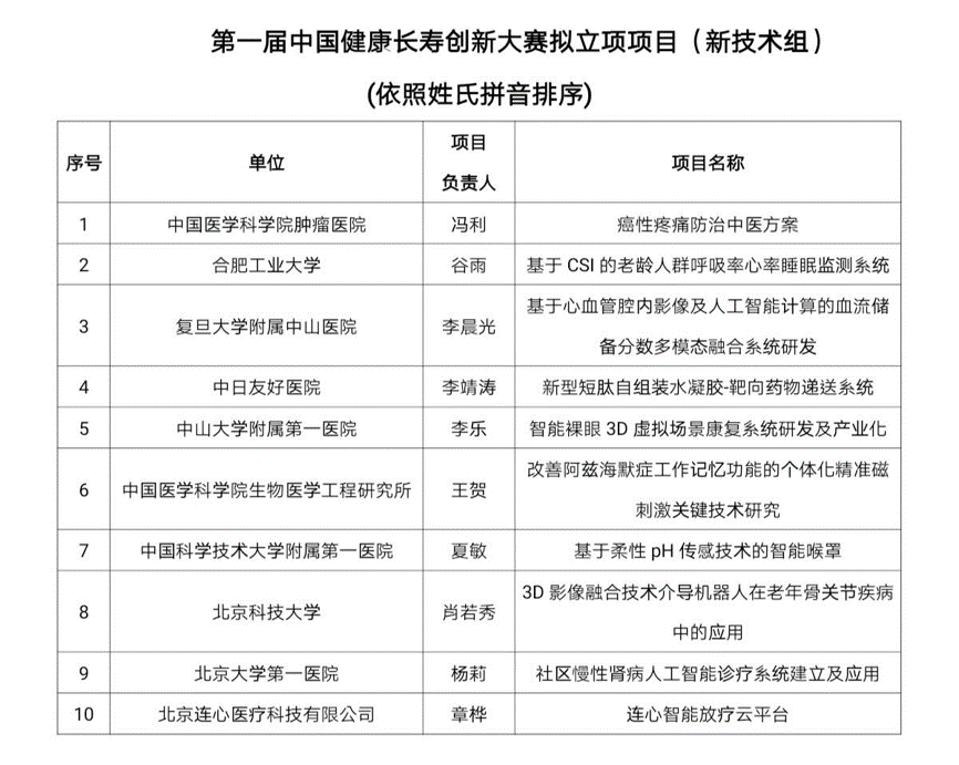 中国健康长寿创新大赛旨在围绕老龄化带来的重要科技问题,激发突破性的原创思想,挖掘和支持新概念、新技术、新产品、新策略,推动产生变革性和可扩展的创新,并通过促进医务人员、科研人员、工程技术人员、企业家等多元创新主体的交叉联动,促成医学创新项目转化,为健康中国战略提供科技支撑,以促进中国健康老龄化与健康长寿创新性研究,为全世界应对老龄化问题贡献东方智慧,展现世界变局中的中国担当。