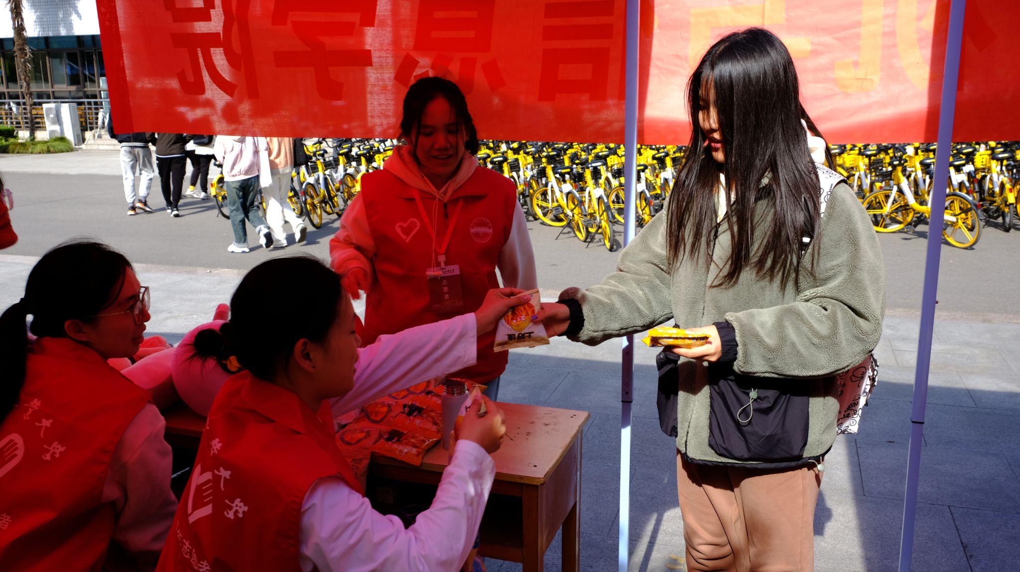 在志愿者们的精心布置和准备下,各种富有创意、新鲜感十足的商品被展示在义卖摊位,有物美价廉的生活用品、流行的玩具公仔、美味可口的零食等,吸引了众多工大师生前来购买。志愿者们热情地推荐,现场气氛活跃,义卖商品深受大家的喜爱。
