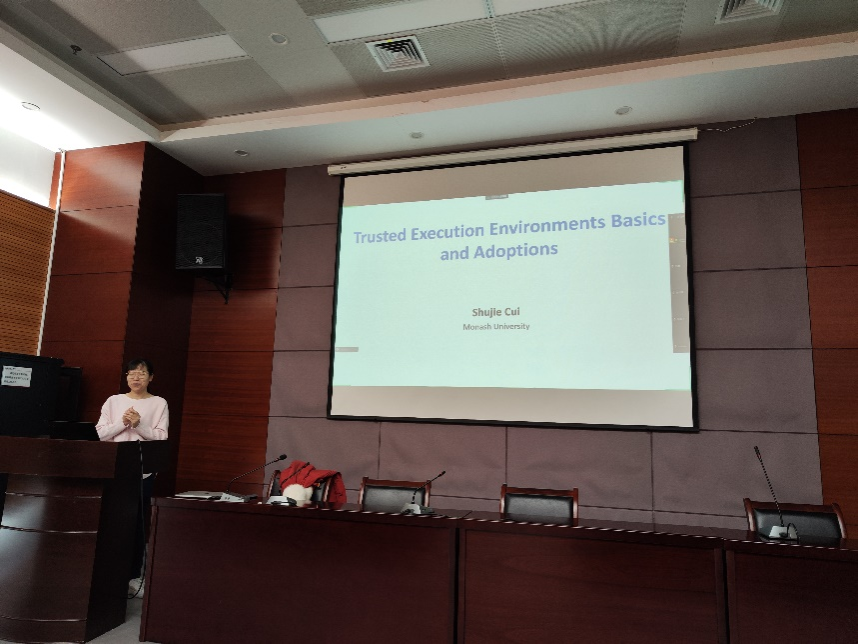 应我院计算机科学与技术系李萌副研究员的邀请,2024年1月11日上午10点30,莫纳什大学的ShujieCui老师在翡翠科教楼第五会议室为我院师生做了题为“Trusted Execution Environments Basics and Adoptions”的学术报告。李萌老师主持了本次报告会,世界杯(中国)安全方向的老师和学生参加了报告会。