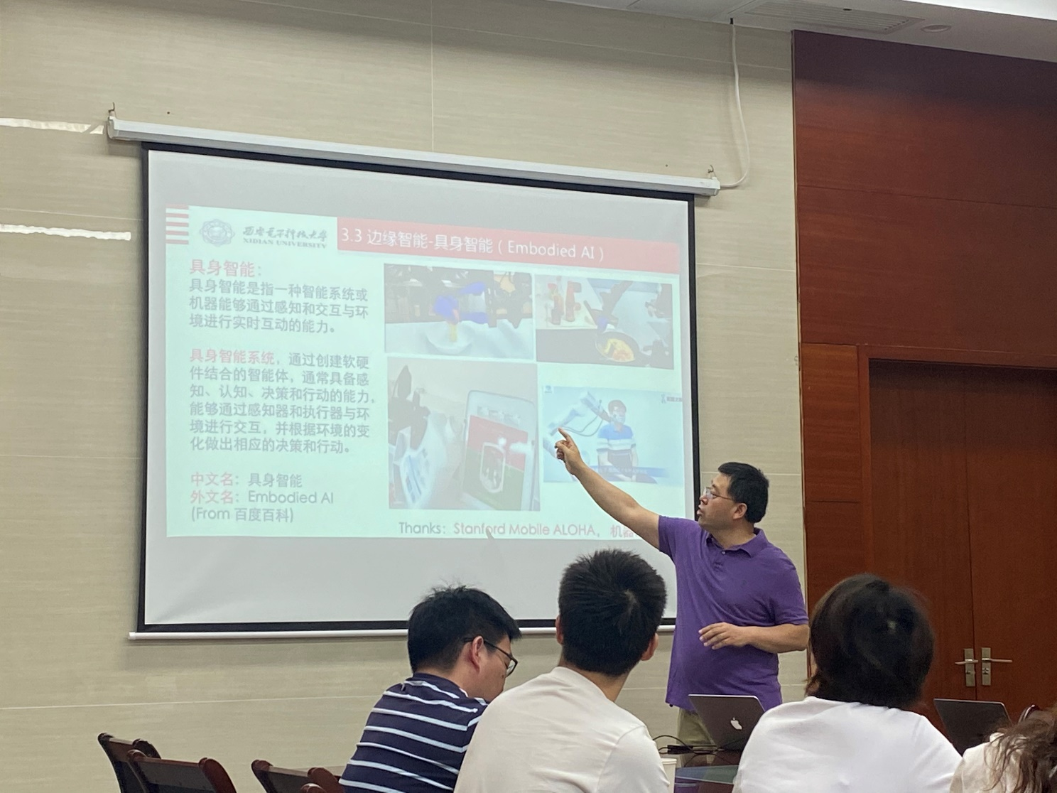 杜教授介绍了其科研团队在联邦学习以及边端推断技术等方面的研究成果,重点围绕多模态感知模型的联邦训练、双向知识蒸馏、联邦半监督学习、模型压缩、跨域自适应等展开。报告结束后,徐娟老师、卫星老师、乔焰老师等分别针对类对比学习的损失设置优化、协作联邦学习的公平性奖励机制设计和半异步联邦学习等问题和杜教授进行了请教讨论。