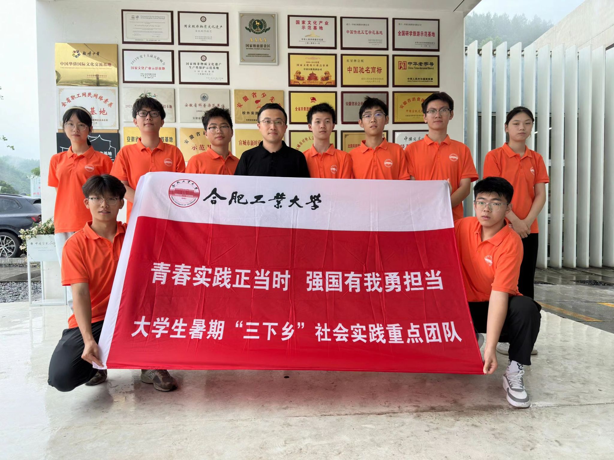 图为团队成员参观宣纸文化教育实践基地合影朱雨润摄