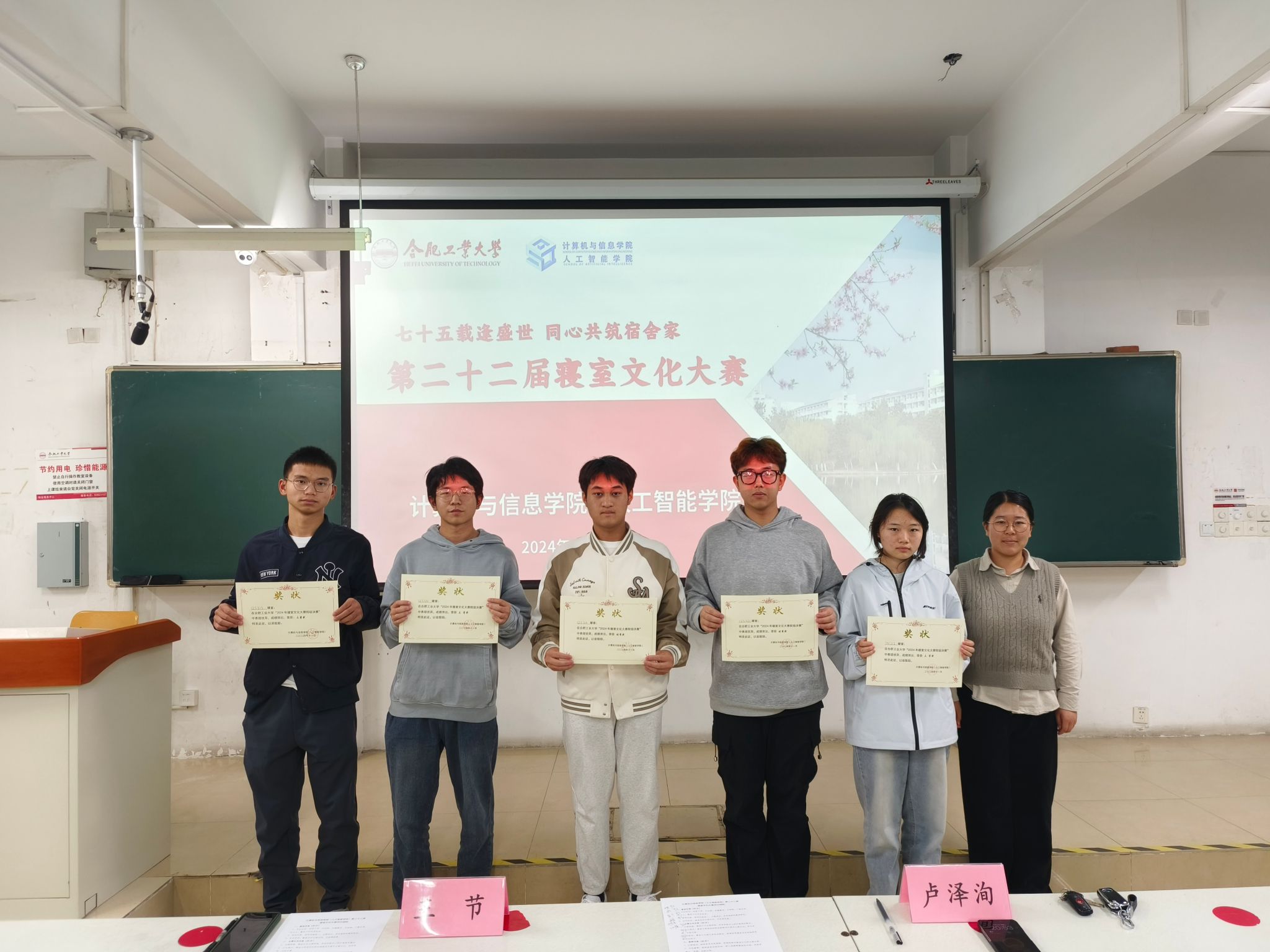 11月12日,计算机与信息世界杯(中国)(人工智能世界杯(中国))在翡翠湖校区7教205教室开展了“七十五载逢盛世,同心共筑宿舍家”第二十二届寝室文化大赛。2024级辅导员卢泽洵、王节、2023级团学组织学生代表以及2024级学生参加本次活动。
