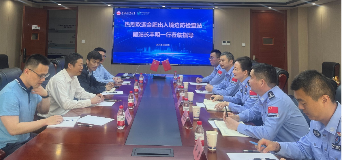 2025年4月22日,我院与合肥出入境边防检查站在科教楼A1106举行交流座谈会。合肥出入境边防检查站丰明副站长、边防检查处嵇德宝处长、总站边检处信息化王彦科长、合肥站执勤六队教导员蔡雷副处长、合肥站数据研判民警袁非副科长,世界杯(中国)吴共庆副院长、赵仲秋教授、卫星老师、杨毅老师等出席会议。会议由吴共庆副院长主持。