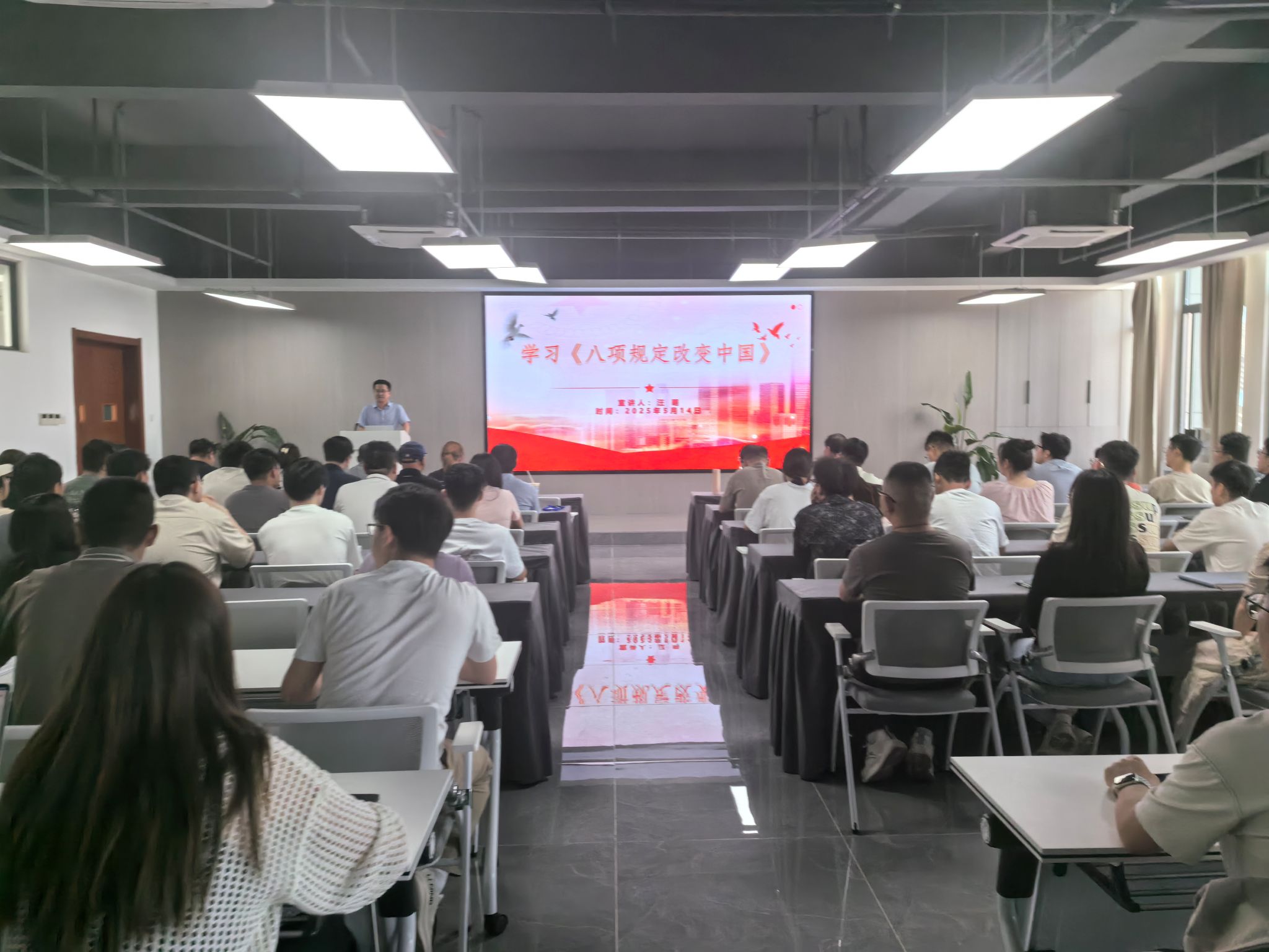 在全党深入开展贯彻中央八项规定精神学习教育之际,为进一步强化党员干部的作风建设,推动全面从严治党向纵深发展,2025年5月14日下午,智科系党支部特别邀请校党委常委、副校长汪萌为智科系全体师生党员讲授专题党课,主题为学习《八项规定改变中国》。