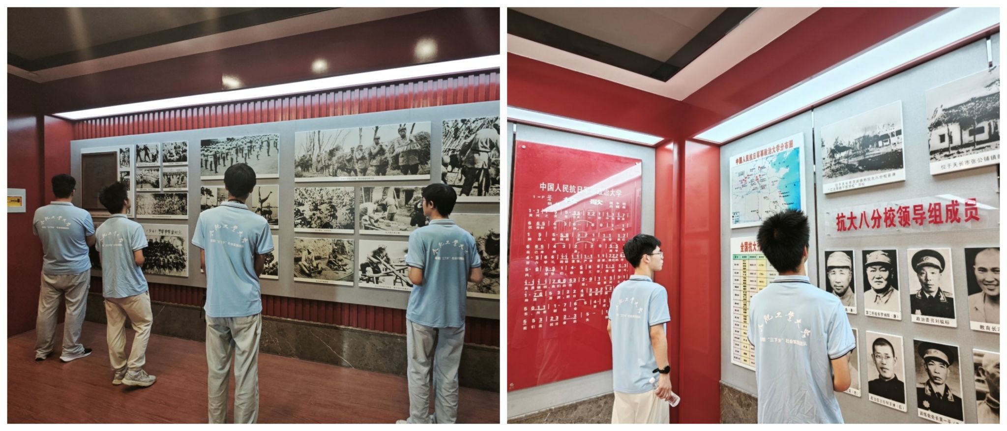 步入纪念馆,团队成员的目光首先被庄重陈列的抗大八分校领导组成员的照片所吸引。每张照片都精心装裱,下方配有详细的文字介绍,清晰展现着他们的生平履历和在抗大八分校的卓越贡献。展墙上,一幅幅泛黄的照片生动定格了学员们火热的学习场景:简陋教室里,年轻战士们聚精会神地听讲;训练场上,他们身姿挺拔、斗志昂扬,淋漓尽致地展现了革命军人的坚毅品格。