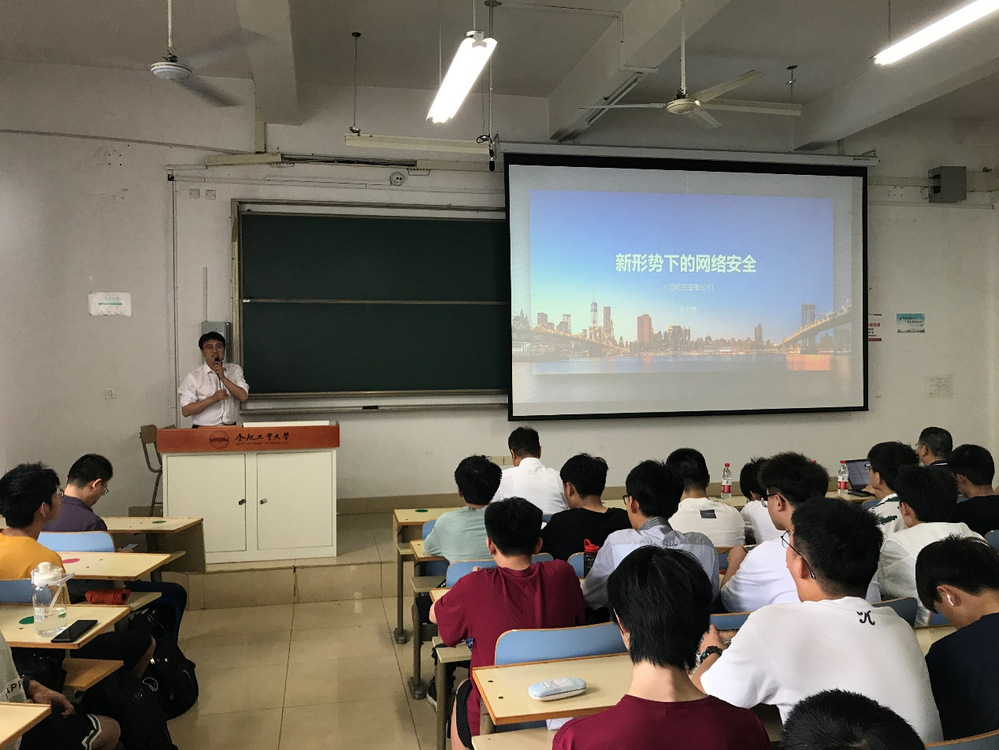Mr. Xu Shihu's report was titled "Network Security in the New Situation". The report conducted a comprehensive analysis of the development trend of network space security at home and abroad, and explained the common network space security issues in the telecommunications industry and corresponding solutions. Through the report study, the students gained a deeper understanding of the connotation and industry dynamics of network space security, and further understood the development direction of the network space security industry.