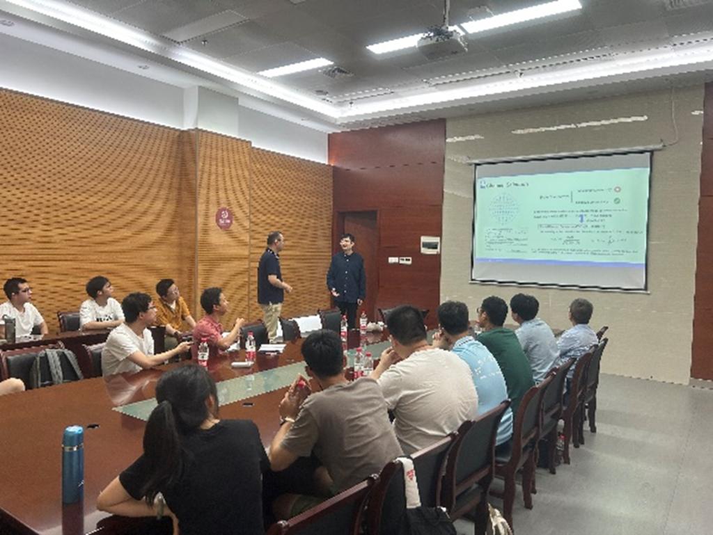 In the report meeting, Professor Meng introduced the latest scientific research achievements of his research team, including system security, blockchain security, and mobile security. After the report, Teacher Li Meng and Teacher Wang Yaofei discussed issues such as brainwave experiment design, algorithm optimization, and studying abroad for a doctorate with Professor Meng.