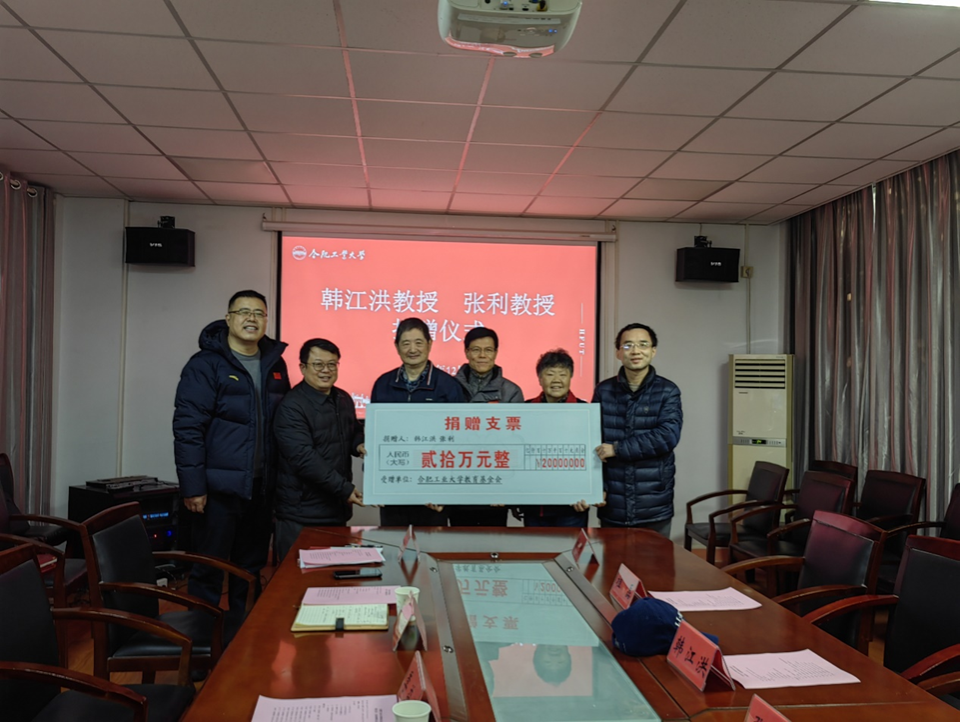 On December 20, 2024, a meaningful donation ceremony was held at the Staff Activity Center, Room 207, marking a significant moment for the university. Retired Professor Han Jianghong from our school, along with his wife, Retired Professor Zhang Li from the School of Mechanical Engineering, donated 200,000 RMB to the university's Education Foundation to celebrate the institution's 80th anniversary. The donation aims to support the development of innovation research and practical initiatives at the university.