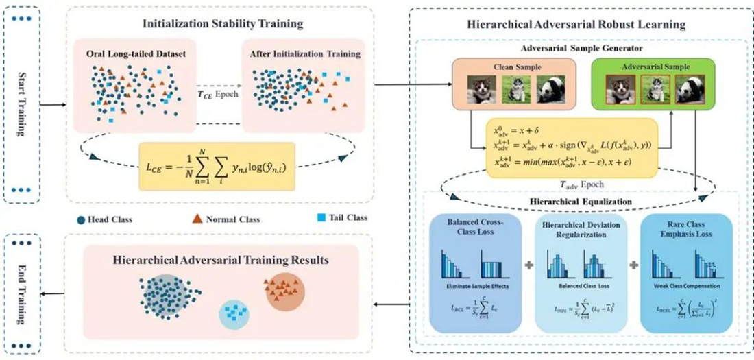 When deploying deep neural networks in real-world scenarios, adversarial robustness becomes a thorny issue. Although adversarial training appears to be a clever strategy for fortifying models, existing research tends to favor the controlled environment of "balanced datasets," overlooking the uneven, long-tailed distribution of real-world data. This oversight significantly diminishes the models' adversarial robustness in practical applications. In response to this challenge, Professor Liu Jian's research team proposed the TAET (Two-Stage Adversarial Equalization Training) framework. Their research findings were accepted and published in the prestigious international computer vision conference, the IEEE Conference on Computer Vision and Pattern Recognition (CVPR). In this publication, Wang Yuhang, a master's student from our school, is credited as the first author, with Professor Liu Jian serving as the corresponding author.