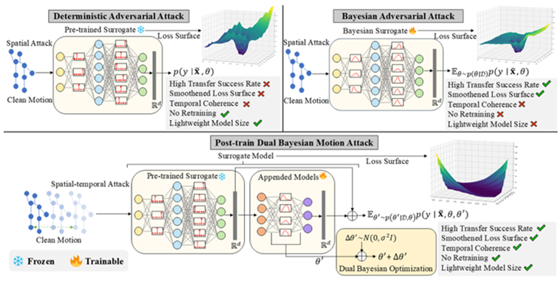 Human action recognition technology has been widely deployed in safety-critical domains closely tied to human life and property security, including autonomous driving, surveillance systems, and medical diagnostics. However, these systems face potential adversarial attack risks, which may severely endanger human lives and assets. A key challenge lies in the fact that while carefully crafted adversarial examples can be effective in specific scenarios, they often fail when transferred to different defense models. This phenomenon has puzzled researchers: Why is adversarial transferability so limited? Our latest research unveils the mystery—the "smoothness" of a model's surface holds the key to adversarial robustness. Experiments demonstrate that the transferability flaws in 3D action recognition surrogate models stem from their excessively "rugged loss landscapes", which confine attack effectiveness to specific models. This discovery not only reshapes the theoretical framework of adversarial attacks but also provides a novel solution for building cross-scenario, generalizable AI defense systems.
